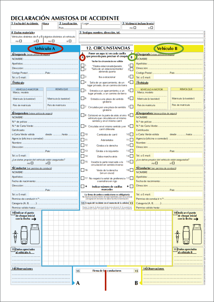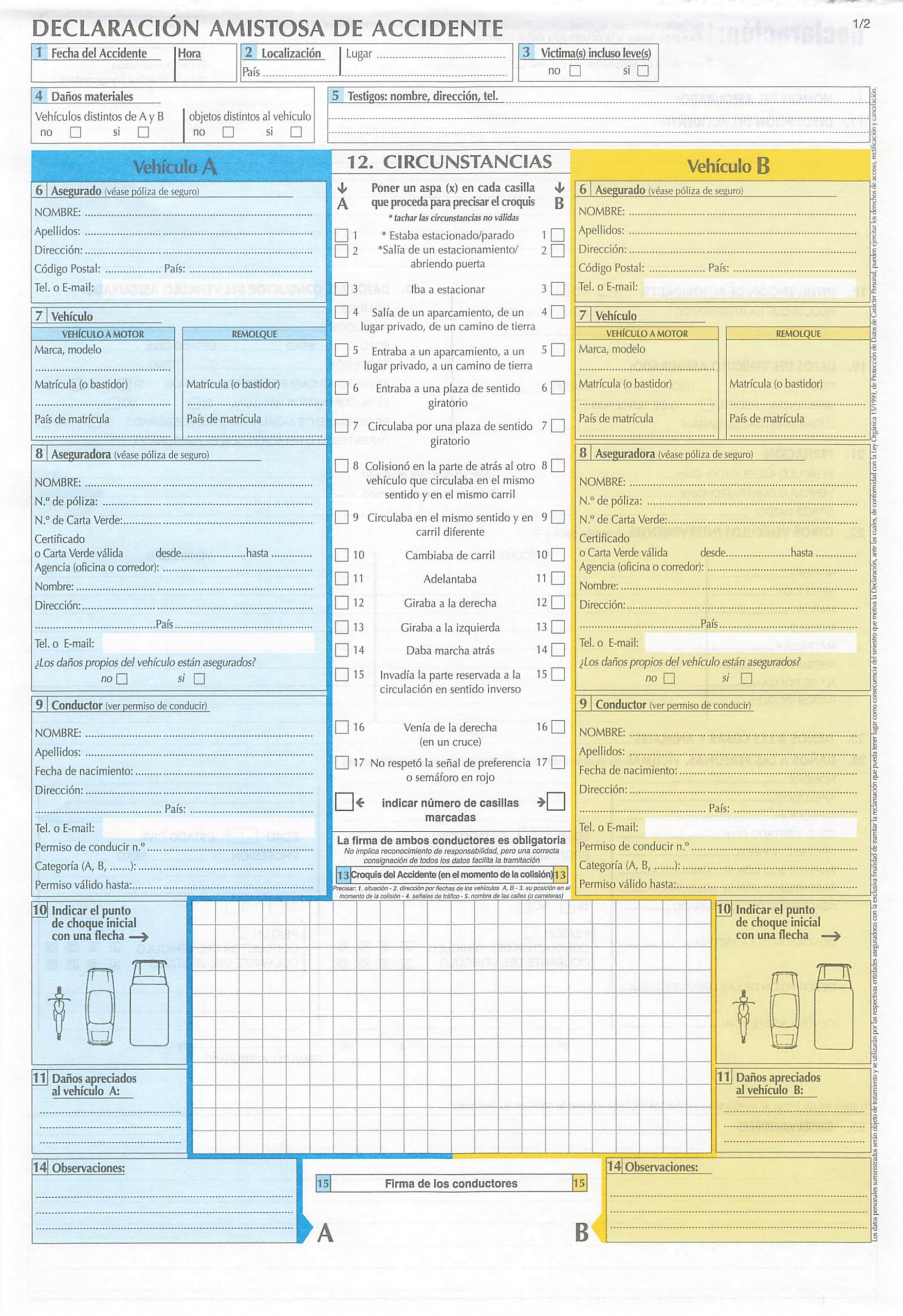 Teniendo en cuenta la importancia que tiene completar bien un parte de accidentes para facilitar el trabajo de las aseguradoras en cuanto a la tramitación del accidente, es conveniente saber todos los campos que hay que rellenar: